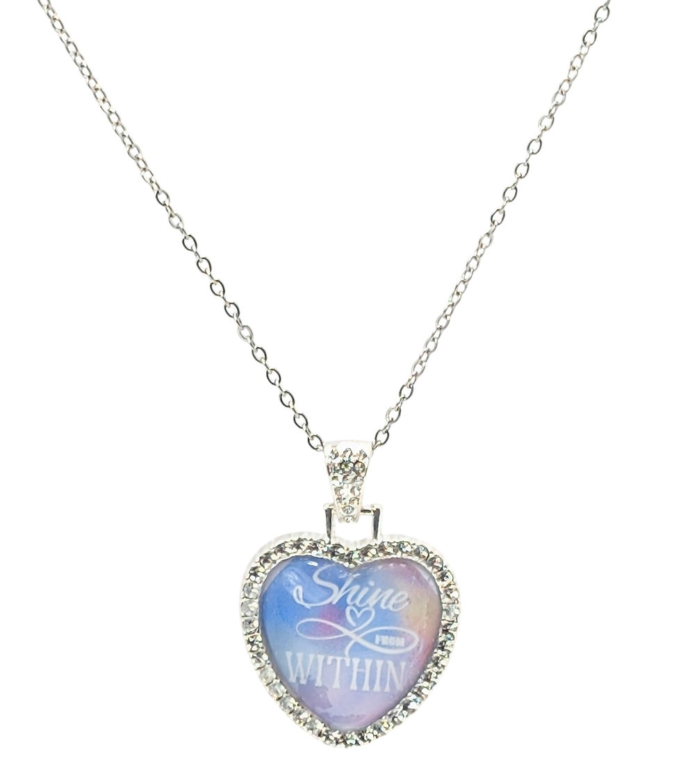 Shine From Within - Rainbow Heart Rhinestone Bezel Stainless Steel Necklace