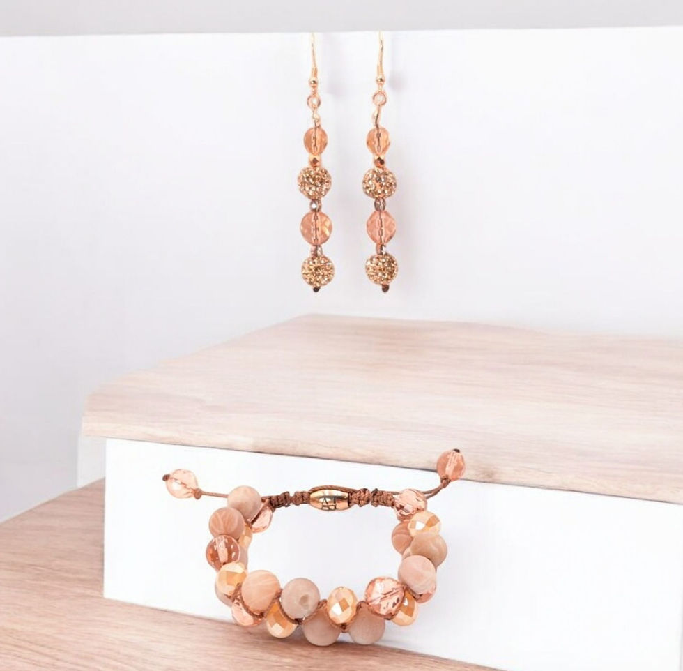 Matte Rose Gold Double Strand Bracelet & Earrings Set