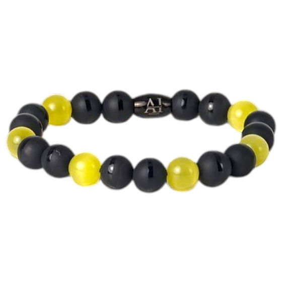 Black Matte Onyx Striped & Yellow Cats Eye Gemstone Bracelet